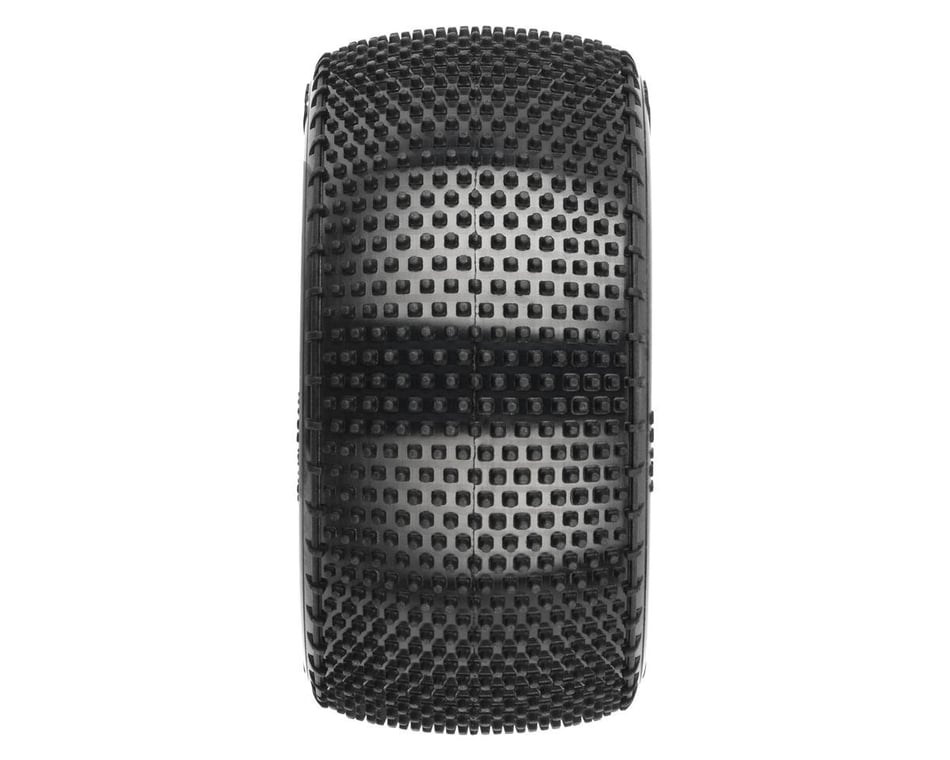 This is the AKA Rivet Carpet Tire, designed to keep you firmly planted on the track these allow you to push your buggy to the limit with confidence. The Rivet features a dense, small pin tread pattern that provides exceptional grip on carpet surfaces. Its unique design, with individual pins that have a square base and transition to a round pin shape, ensures added support even under heavy load, making it ideal for racing. Additionally the outer rib design is inspired by the ever-popular Rebar tire giving it AKA's signature handling and drivability.