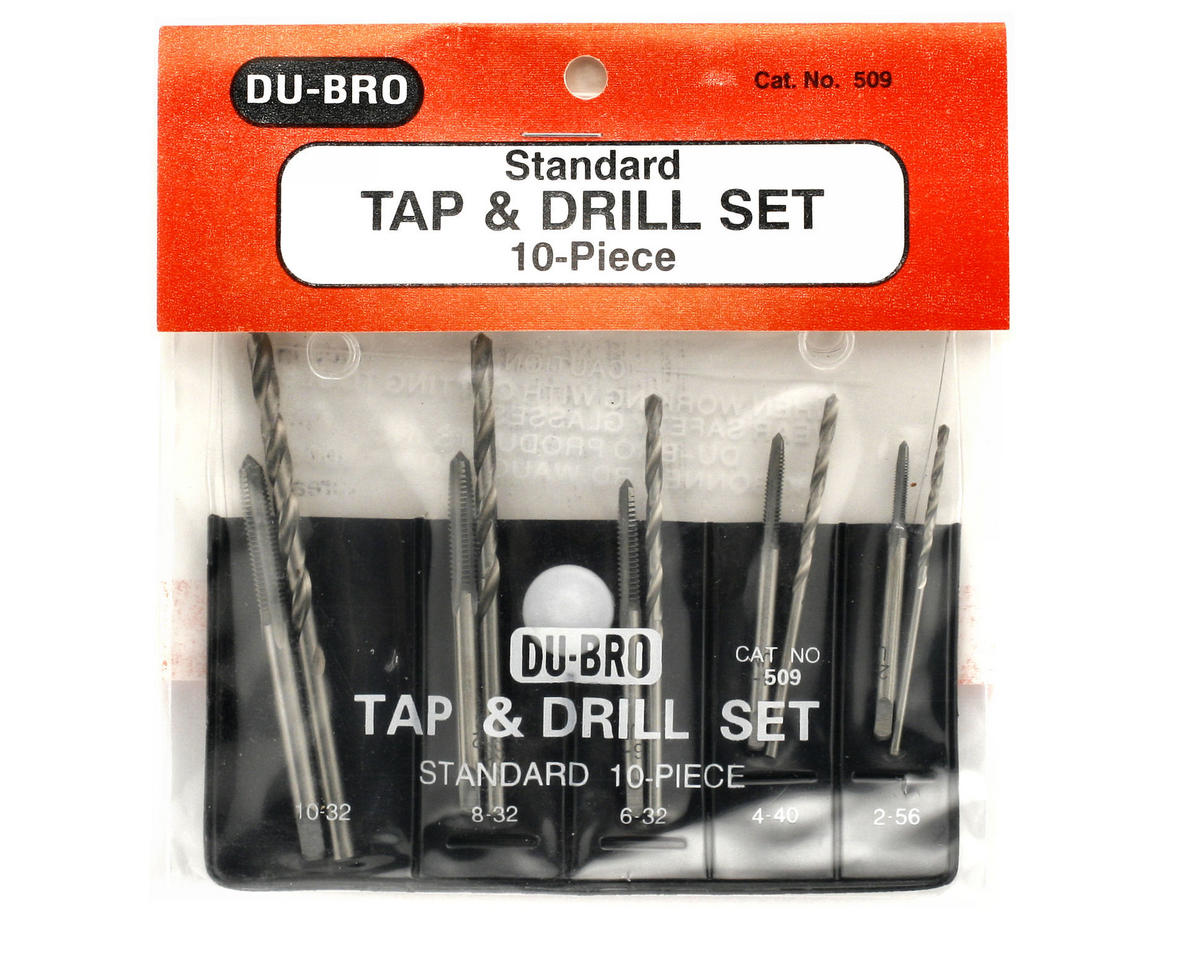 Dubro Ten Piece Set of Standard size Taps and Drills. This high quality convenient set of taps and drills saves you the time and cost of purchasing individual sets. This complete package comes in a vinyl storage case.