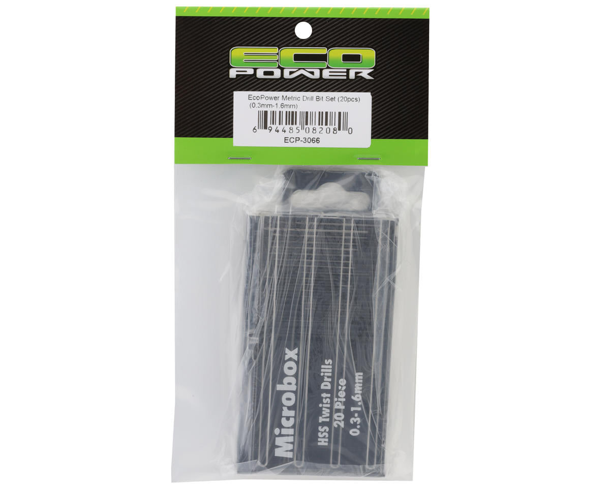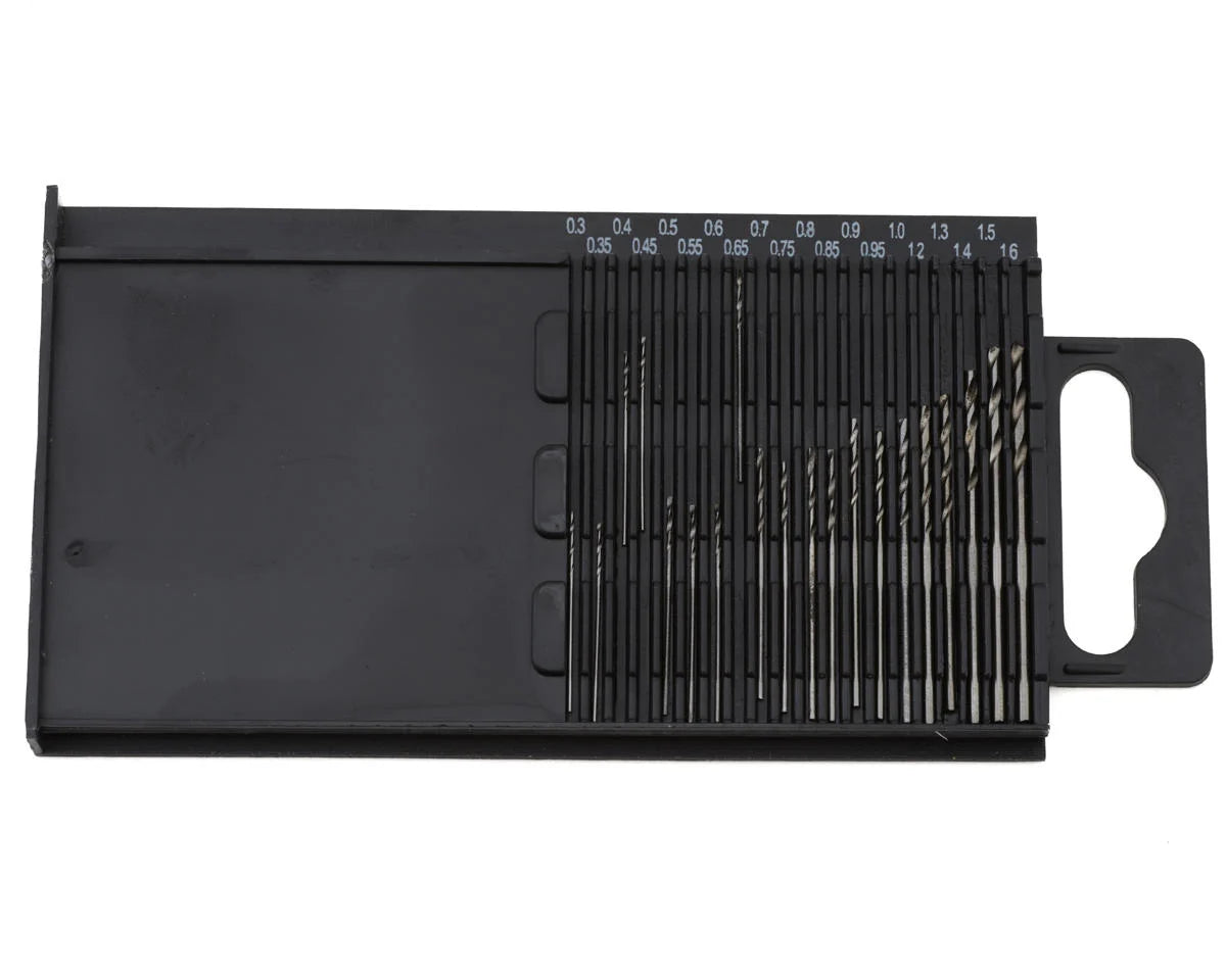 The EcoPower Accessories Drill Bit Set is a versatile collection of 20 high-quality drill bits, ranging in size from 0.3mm to 1.6mm. These precision bits are designed for use in a variety of hobby and modeling projects, allowing you to create accurate and finely detailed holes in various materials. Whether you're working on miniature models or intricate crafts, this set provides the right tool for the job.