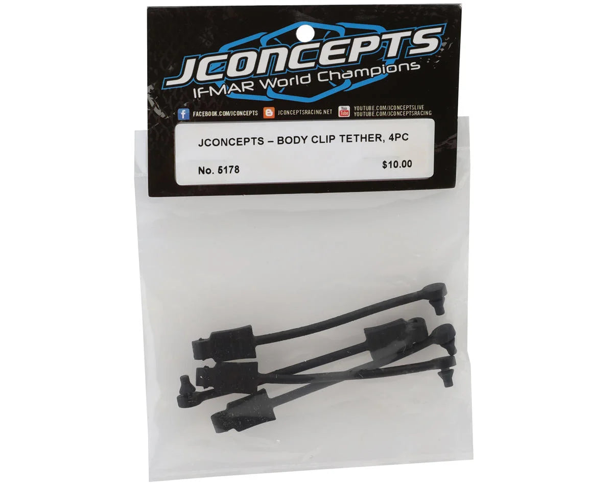 The JConcepts Body Clip Tether is a durable, rubber-molded accessory designed specifically for use with JConcepts body clips (JCO5177 - Sold separately) on large-scale RC vehicle bodies.