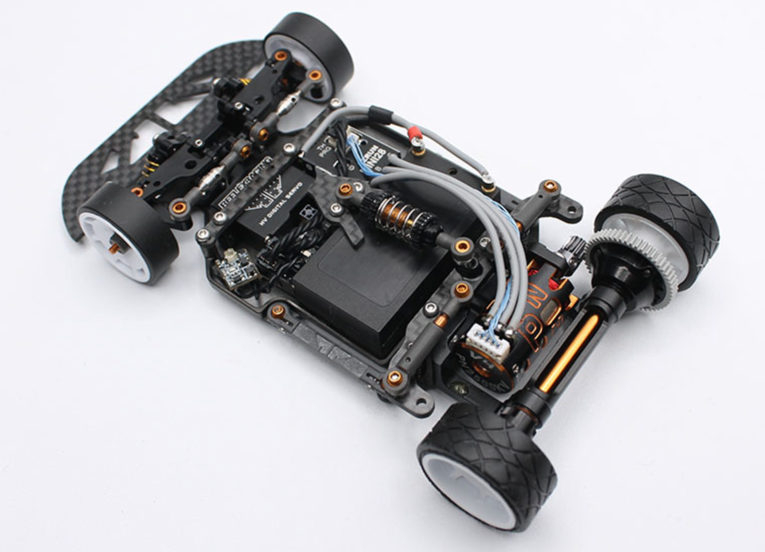This all new chassis for your RX28SE Gen 2 changes the battery and shock mounting system slightly so that we can have more space to move the 340mah hardcase lipo fore and aft on the chassis, as well as allowing for our new 400mah LiHv battery to fit in the chassis in 98mm configuration. This chassis also sheds approximately 5-6g off of the chassis in higher areas ensuring that while the chassis gets lighter, the center of gravity does not suffer. The kit is finished off with a new forward center shock mount that incorporates a band-less battery hold down that is more reliable and easier to use.