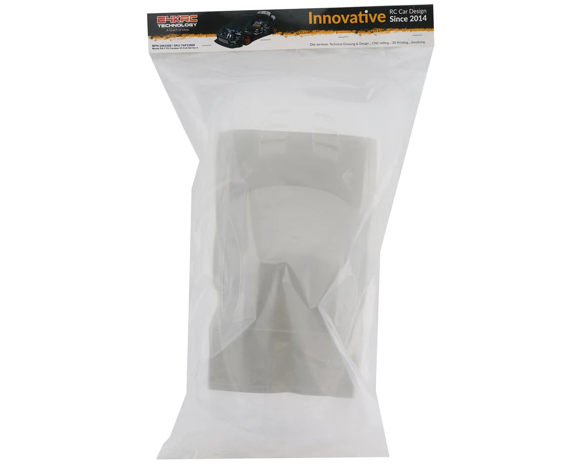 24K RC Technology '90s RX7 FD Pandem V3 Body. The RX-7 FD Series 6, produced from 1992 to 1995, represents a pinnacle in Mazda's sports car legacy. This iconic model, released across two distinct generations, has left an indelible mark on automotive enthusiasts worldwide. The Mazda RX-7 FD Pandem V3 body shell proudly stands as a meticulous replica of the original RX-7 FD Pandem V3, featuring separately crafted front and rear bumpers.
