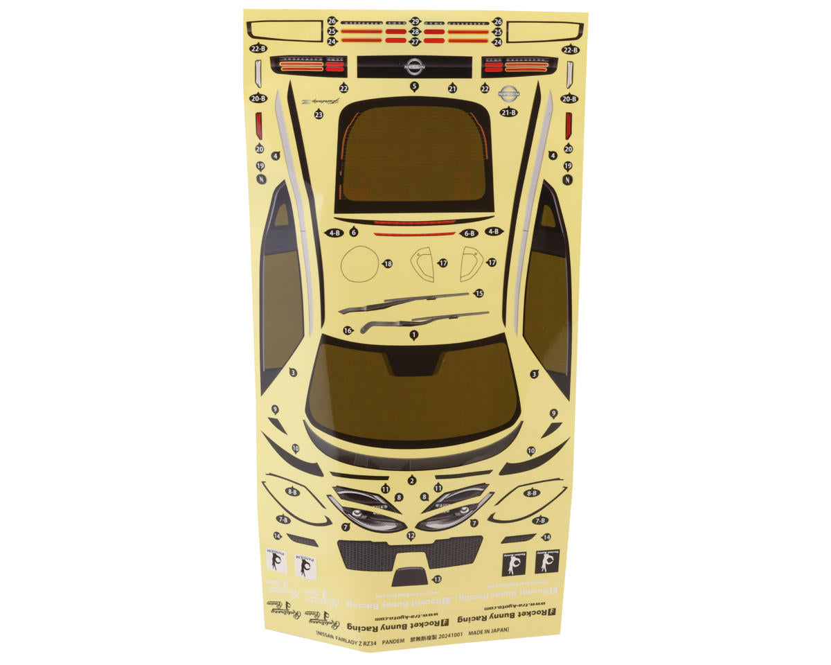 This is the Pandem Nissan Fairlady Z RZ34 Drift Body from Yokomo. Featuring an aggressive silhouette with a sharp nose and robust form, this drift body is designed to bring a commanding presence to your RC vehicle. Its detailed aero parts and spoiler ensure a dynamic and customizable look for drift enthusiasts.