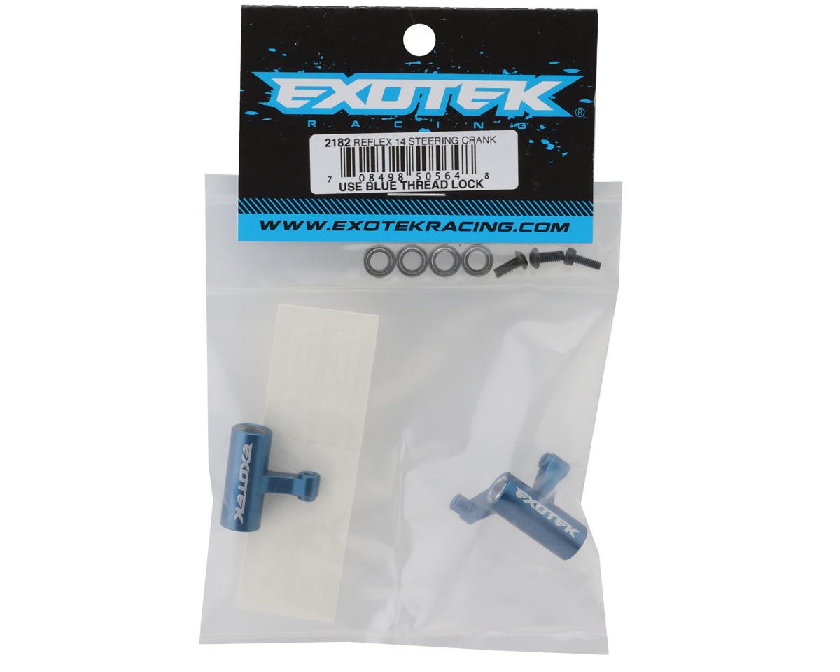 Elevate the steering precision of your Associated Reflex 14B, 14T, and 14MT series vehicles with the Exotek Reflex 14 HD Aluminum Steering Crank Set. Engineered with heavy-duty aluminum alloy, this set boasts a polished blue finish, machined bearing pockets, and robust construction, ensuring seamless and accurate steering operation.
