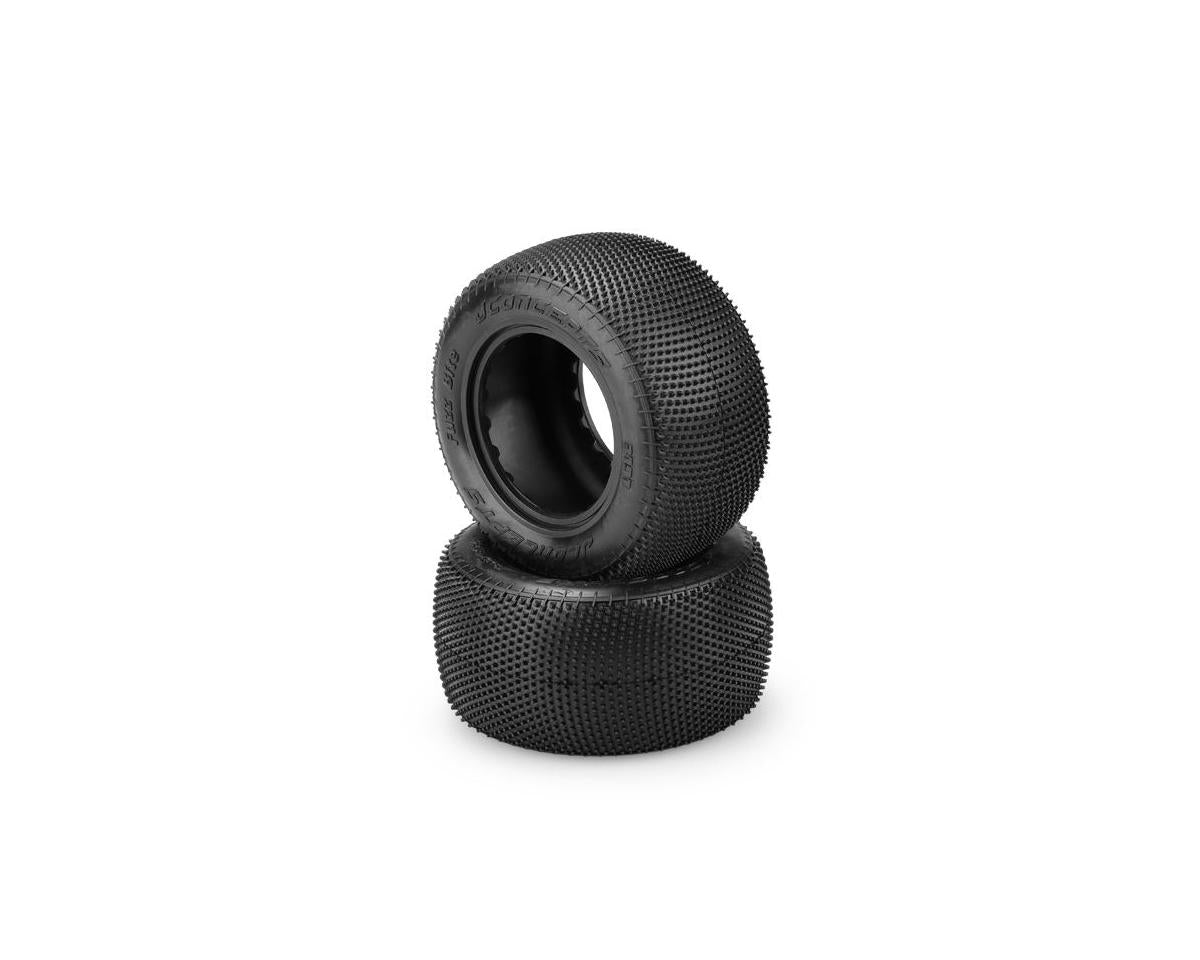 This is the JConcepts Fuzz Bite Carpet 2.2" Stadium Truck Tire. This is a pin tire option for carpet and turf racing, designed with radius positioning to enhance the drive on a range of surfaces.