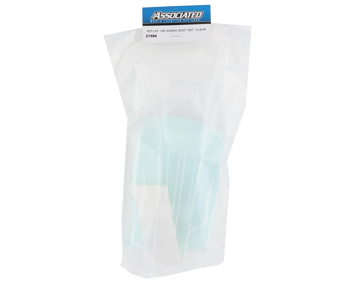 This is the Team Associated Reflex 14B Gamma Clear Buggy Body. This optional body is intended for the Reflex 14B Gamma buggy and allows you to customize the Reflex 14B Gamma buggy and look different from everybody else. Package includes one Reflex 14B Gamma buggy clear body with one decal sheet.