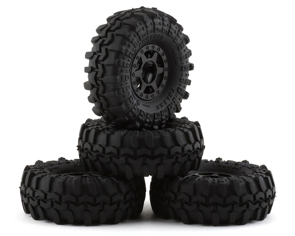 The Pro-Line SCX24 1.0" Interco Super Swamper TSL SX Pre-Mounted Tires with Holcomb Wheels are designed to be an extreme terrain tire perfect for small-scale crawlers. Sitting at 2.25" tall and 0.85" wide, these are some of the largest tires made for 1/24 scale. Officially licensed, these tires feature the Tread Biter cleats and the Massive Side biters found on the full-sized tire. A symmetrical tread pattern provides excellent traction and holding power. Each tire is mounted to a Pro-Line Mini Holcomb Bead-Loc wheel and features a soft foam insert.