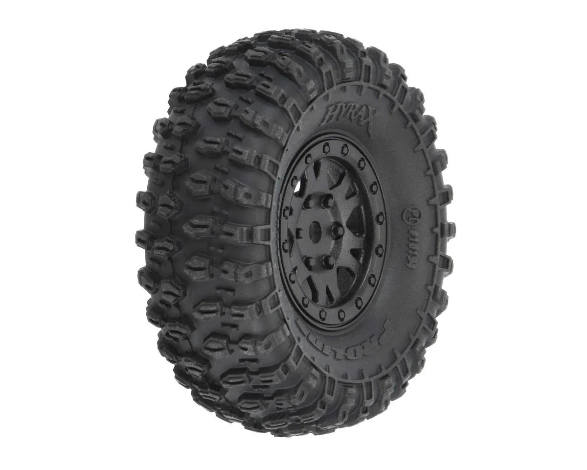 The Hyrax 1.0" tire comes conveniently pre-mounted to the Mini Impulse Black Internal Bead-Loc 1.0" Plastic 7mm Hex wheels! Yes, these are true 3-piece Bead-Loc wheels! Just like Pro-Line's 1:10 size Impulse wheels, these Mini Impulse wheels are designed to not only look scale but are super easy to use by only requiring 3 screws per wheel for mounting tires. The unique 3-piece plastic wheel design bolts together in the back and locks on to Pro-Line's Hyrax 1.0" Crawling Tires and also works with many existing 1.0" tires for the SCX24.
