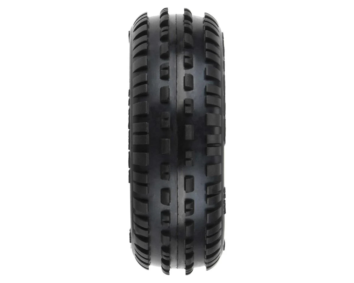 Pro-Line Mini-B Front Pre-Mounted Wedge Carpet Tires feature the iconic hook shaped pins found on the 1/10 size tires. This will provide you with the steering you need while not being too grabby. These front tires are Pre-Mounted to lightweight and durable narrow front carpet racing wheels for the Losi Mini-B chassis. Just like Pro-Line's other Velocity wheels, they feature the latest in style and performance with a reversed dish design that protects the nut and axle from damage during collisions. Package includes two pre-mounted tires.