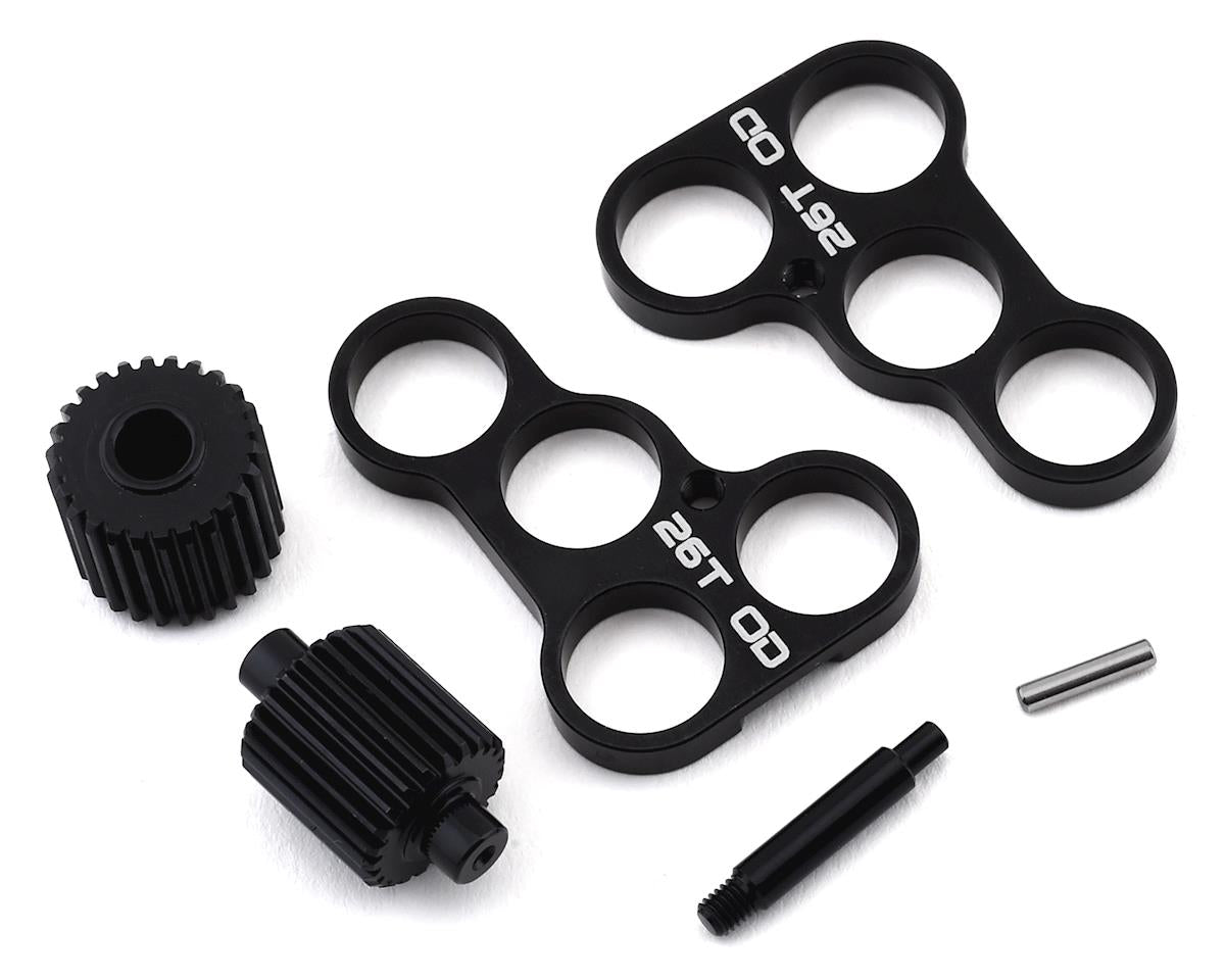 The optional Vanquish Products VFD Overdrive 26T Machined Gear Set is intended for use with the VS4-10 Origin Scale Rock Crawler Kit using the VPS10152 VFD Transmission Kit.