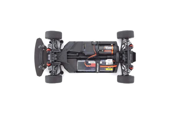 For the pure enjoyment of R/C car driving, the combination of a beautifully reproduced car body with the FAZER series Mk.II chassis can’t be beaten. Kyosho has taken its standard touring car chassis and given it a full model makeover that has evolved performance to a new level. A simplified design with fewer parts has improved maintenance efficiency and reduced weight while core strength and rigidity has been increased through new materials and ribbing and stiffeners on front and rear. In addition, the symmetrical chassis design synergizes excellent front-rear balance through the suspension with responsive control, irrespective of power source. Featuring front & rear gear differentials, oil shocks and full ball bearing specs, the high durability and impact resistance allows drivers to unleash the full potential of the chassis. Brake disc wheel hubs with two different offsets (0mm, +5mm) provide compatibility with 190mm and 200mm width body styles and allows the wheelbase to be adjusted to 274mm by replacing some parts (sold separately) for compatibility with other 1/10 scale body styles, in addition the body included. The Readyset package comes fully assembled and includes everything except charger and battery for the chassis, and batteries for the transmitter.