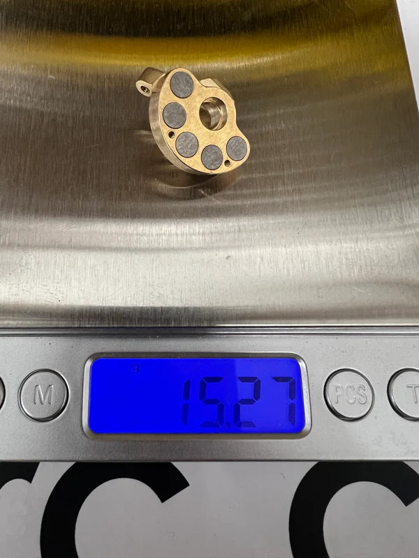 Designed to get all the weight as low as possible they are machined from brass with 5 tungsten slugs so you can dial the weight bias of your rig to perfection. The hardware for the steering links has been beefed up to M2 so no more snapped screws! These will tuck into a Hard Park wheel beautifully with either of our hubs to reduce scrub steer. The slugs are preinstalled. Designed to fit industry standard based scx24 axles (stock, Super 8’s, Injora +4, etc.)