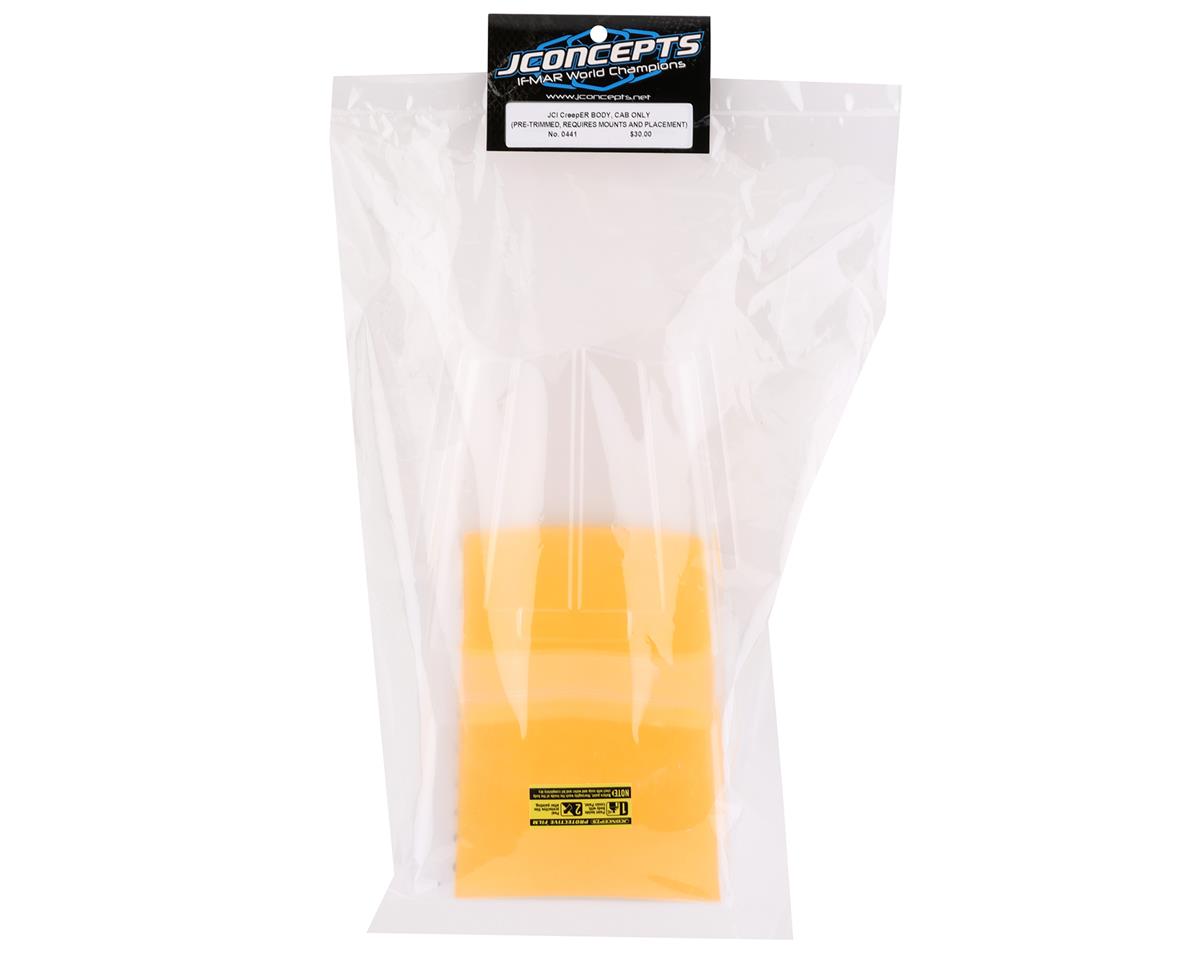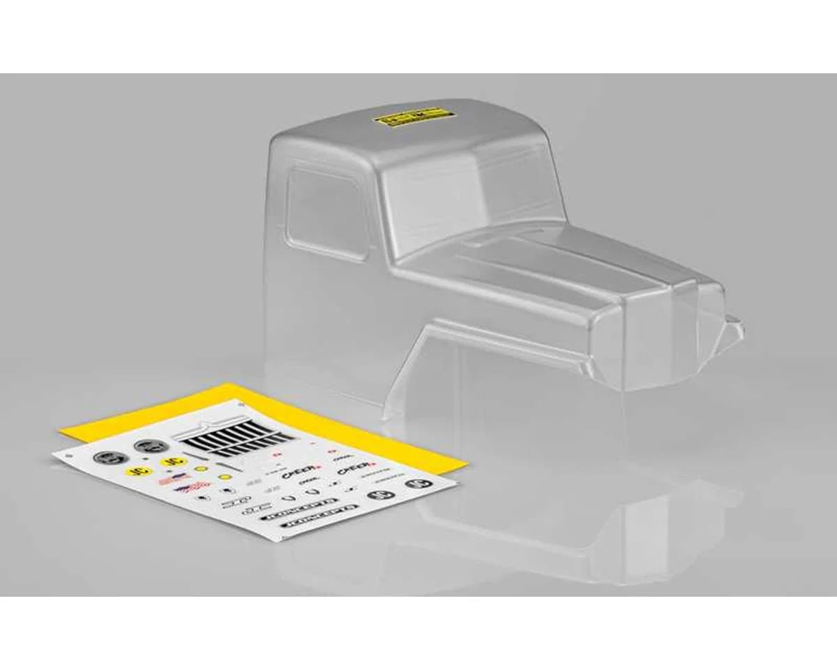 Each package includes window mask, JCI CreepER decal sheet and clear polycarbonate body. The body shell is meant for scale, trail, and competition oriented crawlers who have body mounting experience and the ingenuity to fabricate their dreams.
