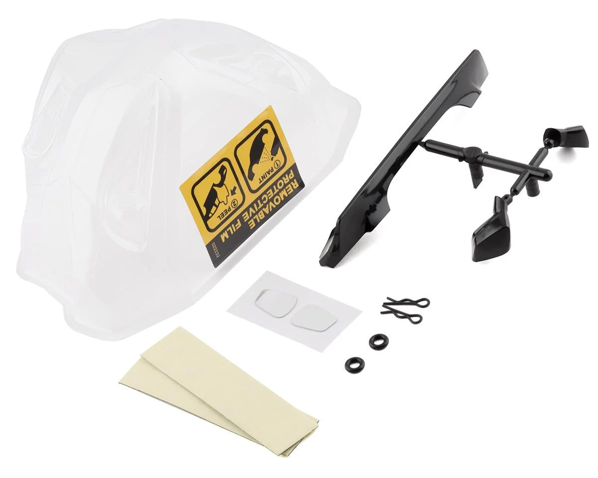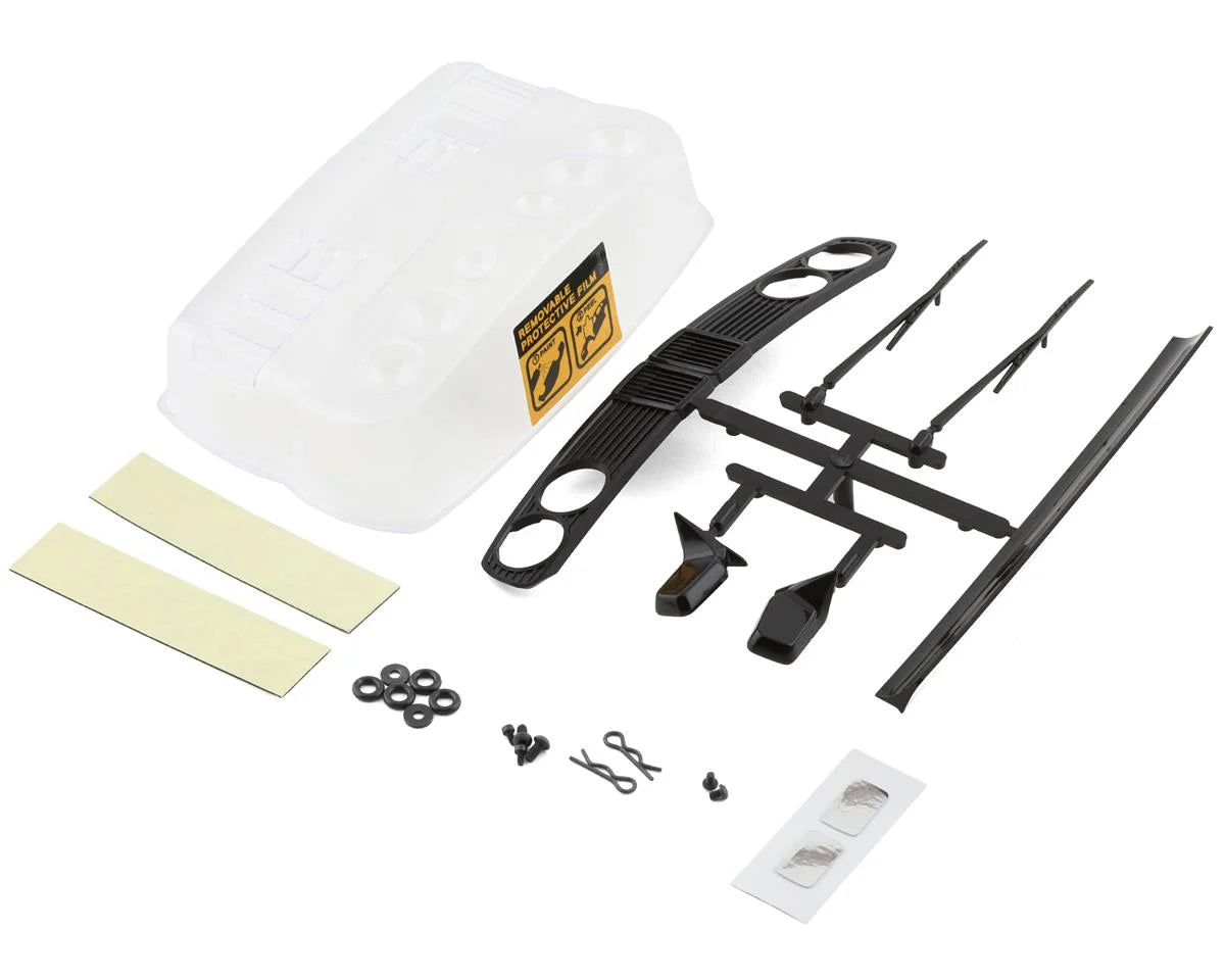 MST JZ3 Drift Body. This clear body includes clear lexan light buckets, as well as molded plastic detail pieces, window masks and decals.