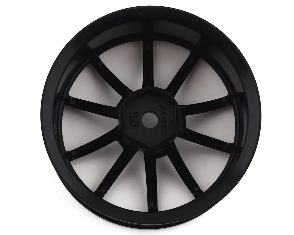 MST GTR Wheel Set. These wheels offer a +9mm offset and feature a 10 spoke design with details that will look great on any drift car. Package includes four wheels, four wheel nuts and four adhesive foam strips.