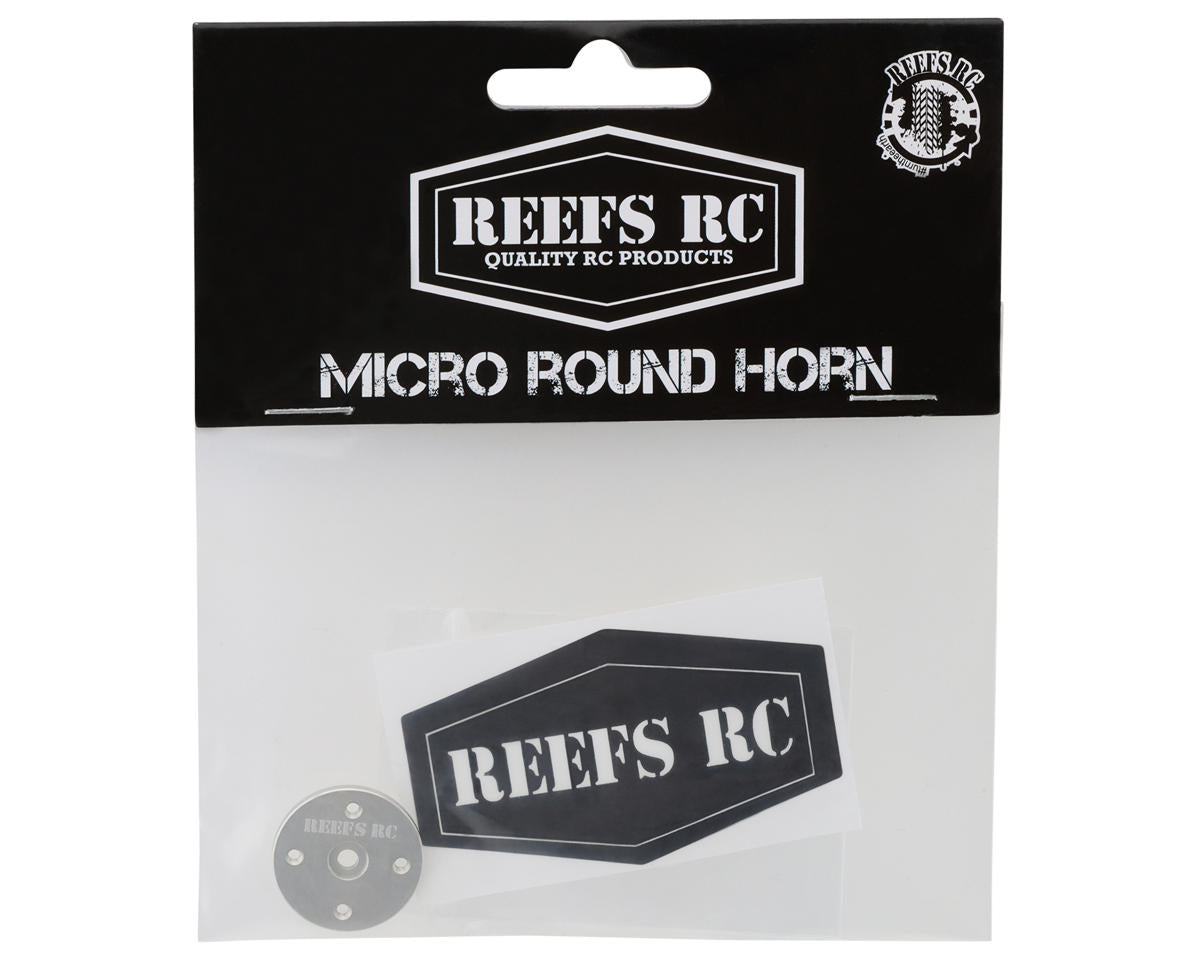 This is The Reefs RC Aluminum Micro Round Servo Horn. CNC-machined from high quality aluminum, this round servo horn is intended for use with the 99Micro and 179Micro servos.