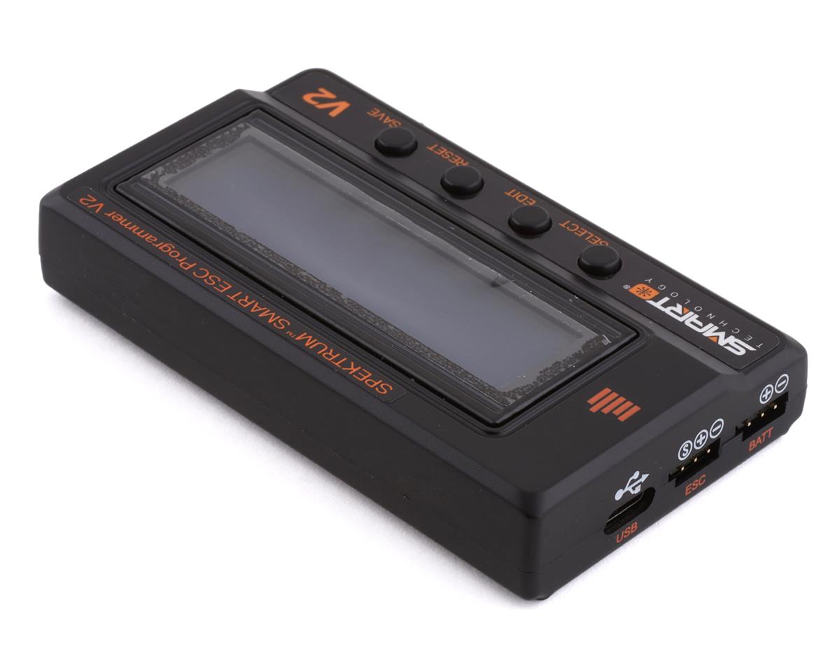 The Spektrum Smart ESC Programming Update Box lets you set, review, adjust and save the operating parameters of your Avian and Firma electronic speed controls. When connected to a PC using the included USB cable, the programmer will update Smart ESC firmware and can adjust parameters through the Spektrum SmartLink app. You can also use it to check the balance of your LiPo battery cells.